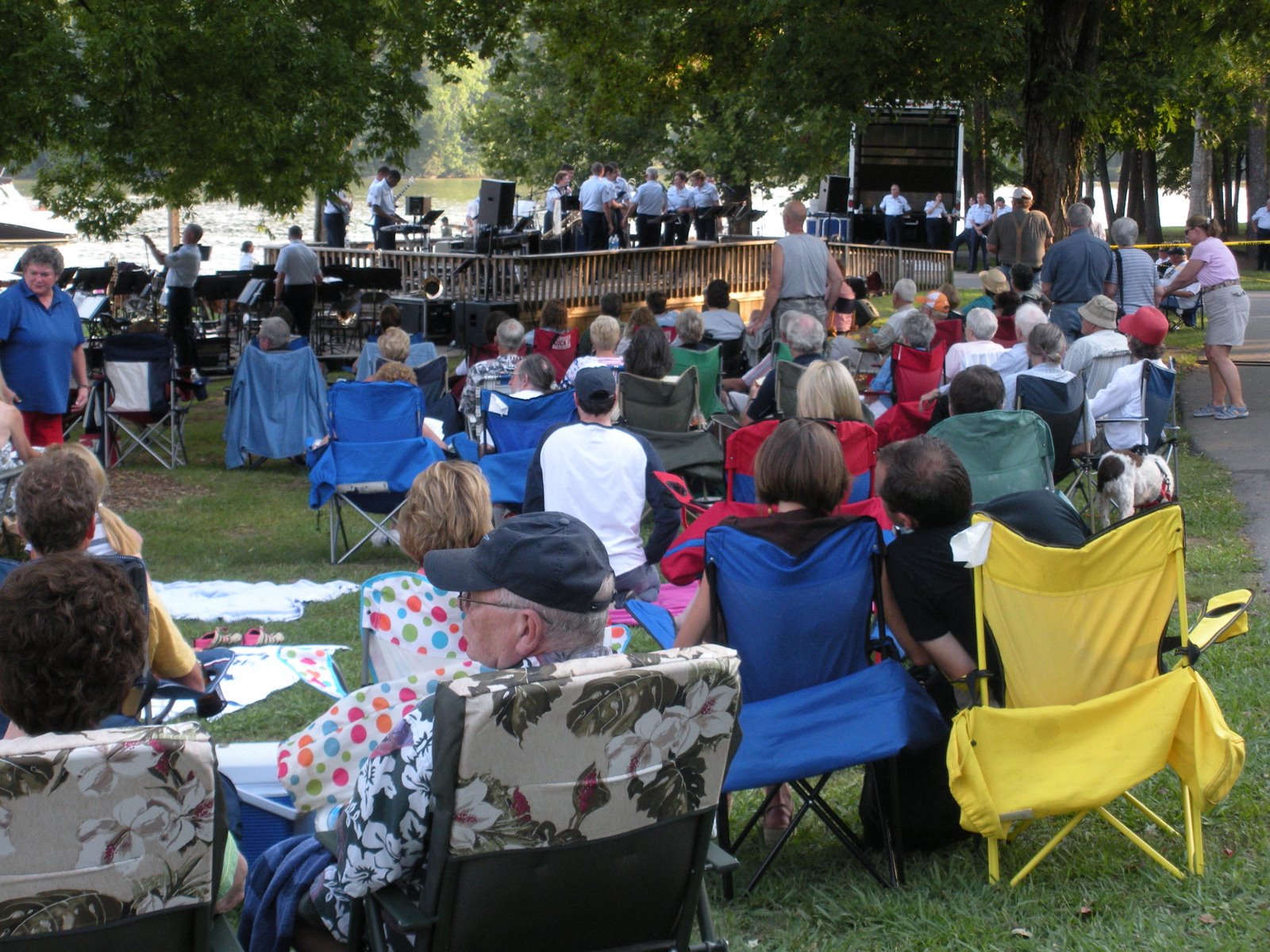 The band performed a series of military band type music and some tunes from the 60’s…does anyone remember the twist? We listened for a while and returned to our chairs located on the other side of the cove. Unfortunately, a young couple (20’s) had settled in fairly close to us and were a little too romantic for this very public setting. Help, help! Somebody call the fire department for a cool down!