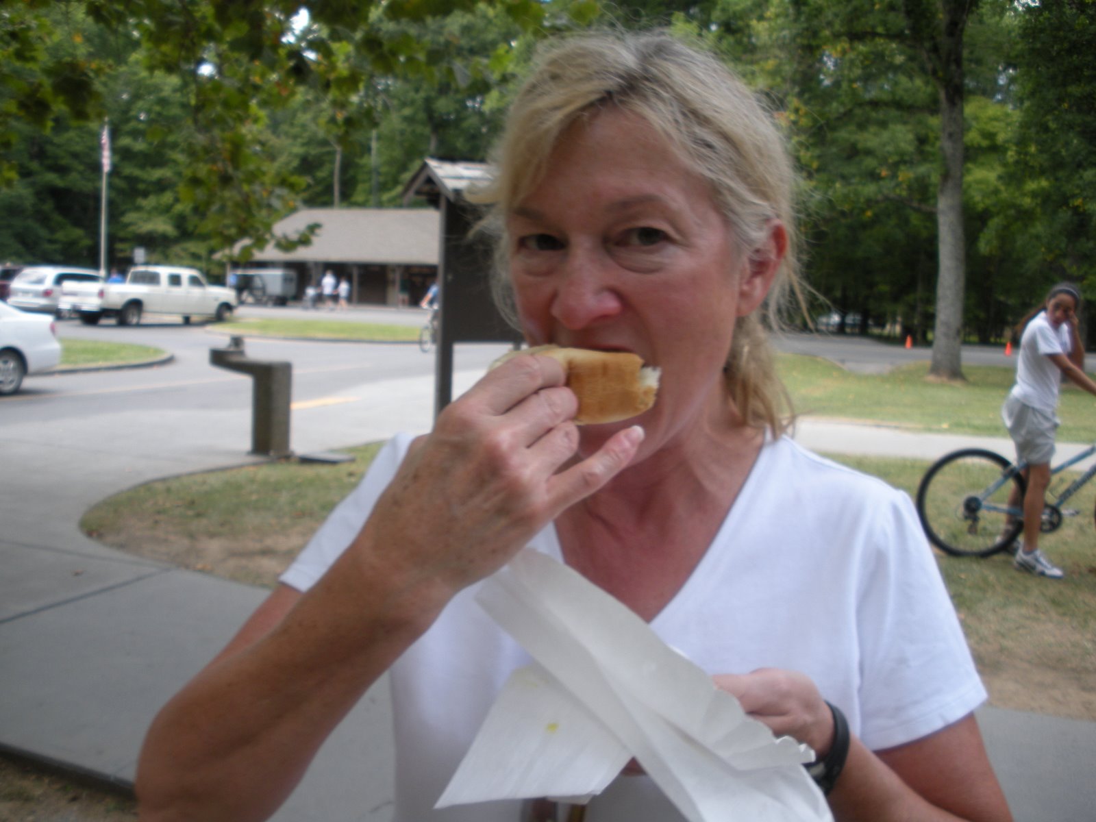 This is the 3rd meal. After a couple of hours of relaxing, we walked down to the camp store and got a hot dog. Our plan had been to cook our pancakes and leave. We had not counted on staying through lunch. Note to self, pack lunch next time!