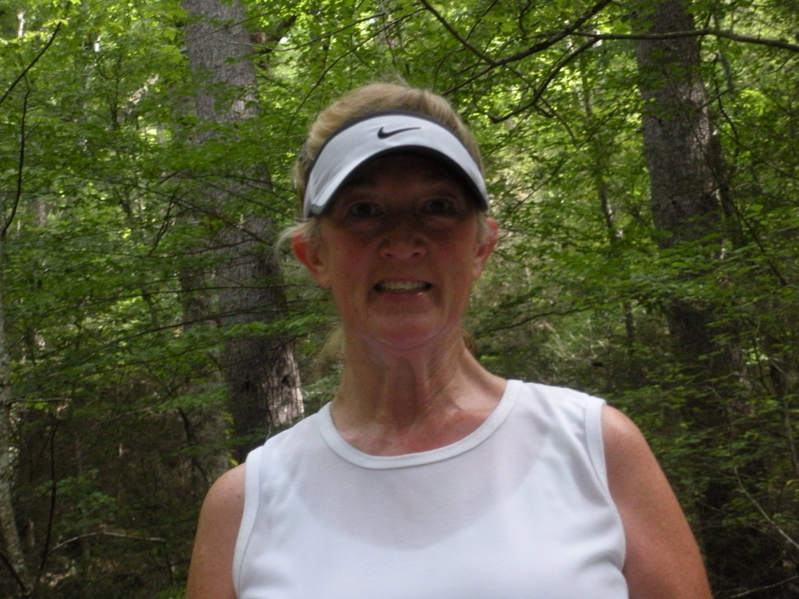 Me right after the run. Hot, sweaty and happy to be done. What the heck is going on with the visor and my ear….at that point I could care less!