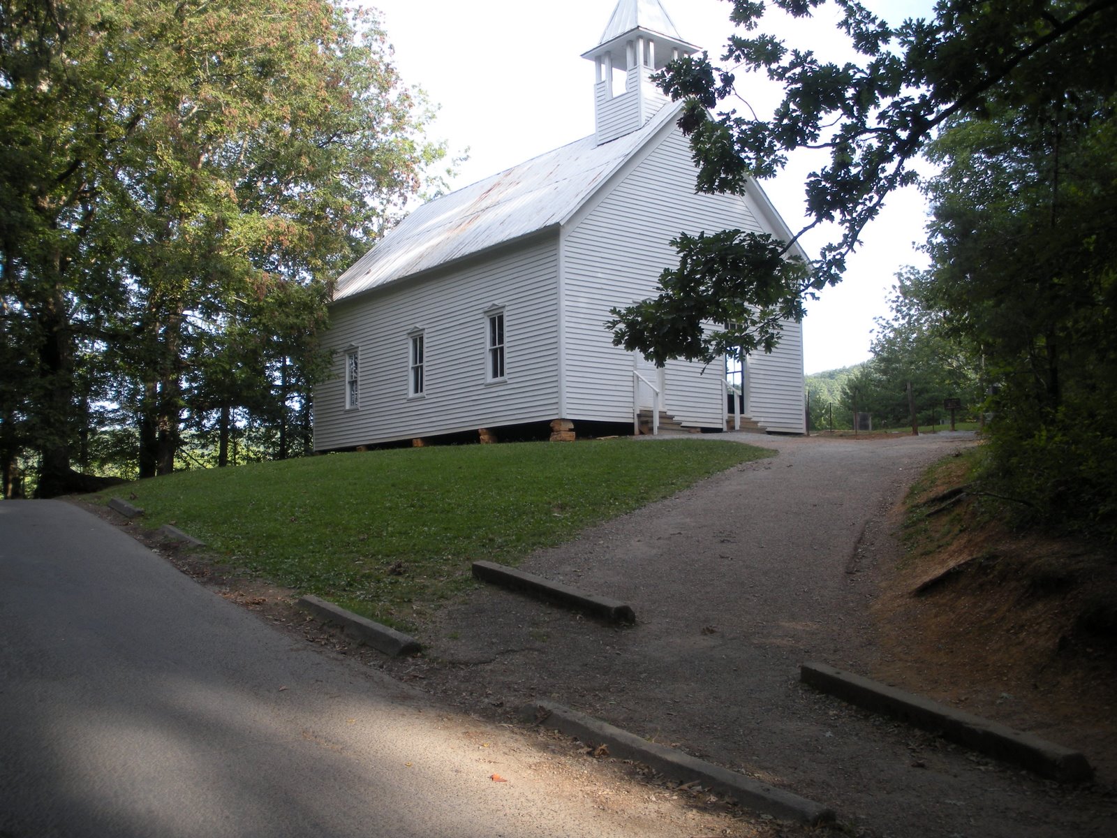 This is the first church on the Cades Cove Loop. I have explored it at least a 100 times. I believe this is the Methodist Church, the second oldest church in the Cove, built about 1840. There are 100 graves in a lot behind the church (barely visible at the end of the gravel road). The road leading to this stop is a long, gradual climb (you can see the top in the above picture). While I did stop for a moment to take the picture and catch my breath, I did not stop to explore 🙂