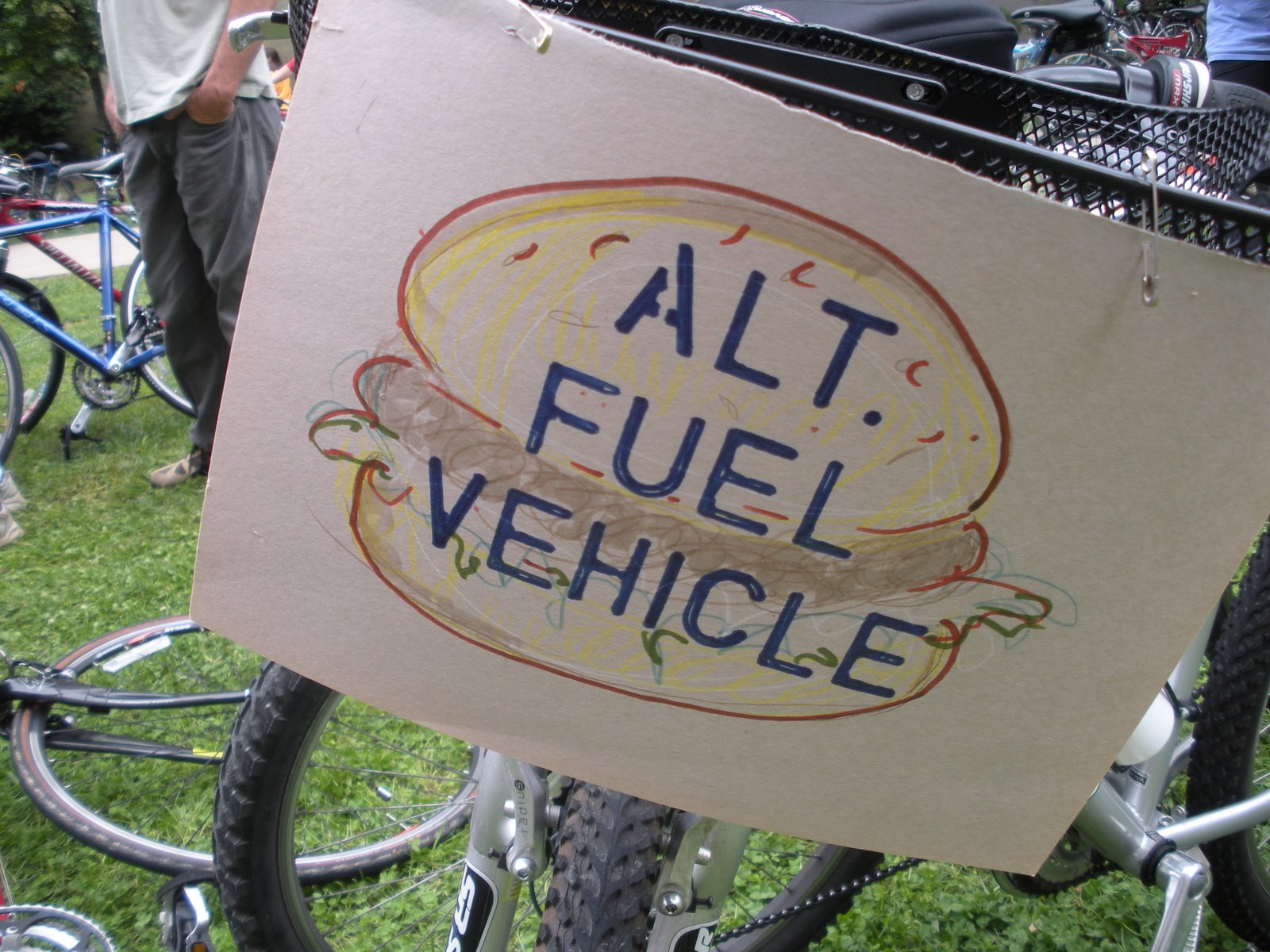 Too cool! This is a boom box powered by a car battery. A young woman pulled this contraption behind her bike, blasting upbeat tunes. She rode near us for a good part of the ride and we pedaled to the beat!