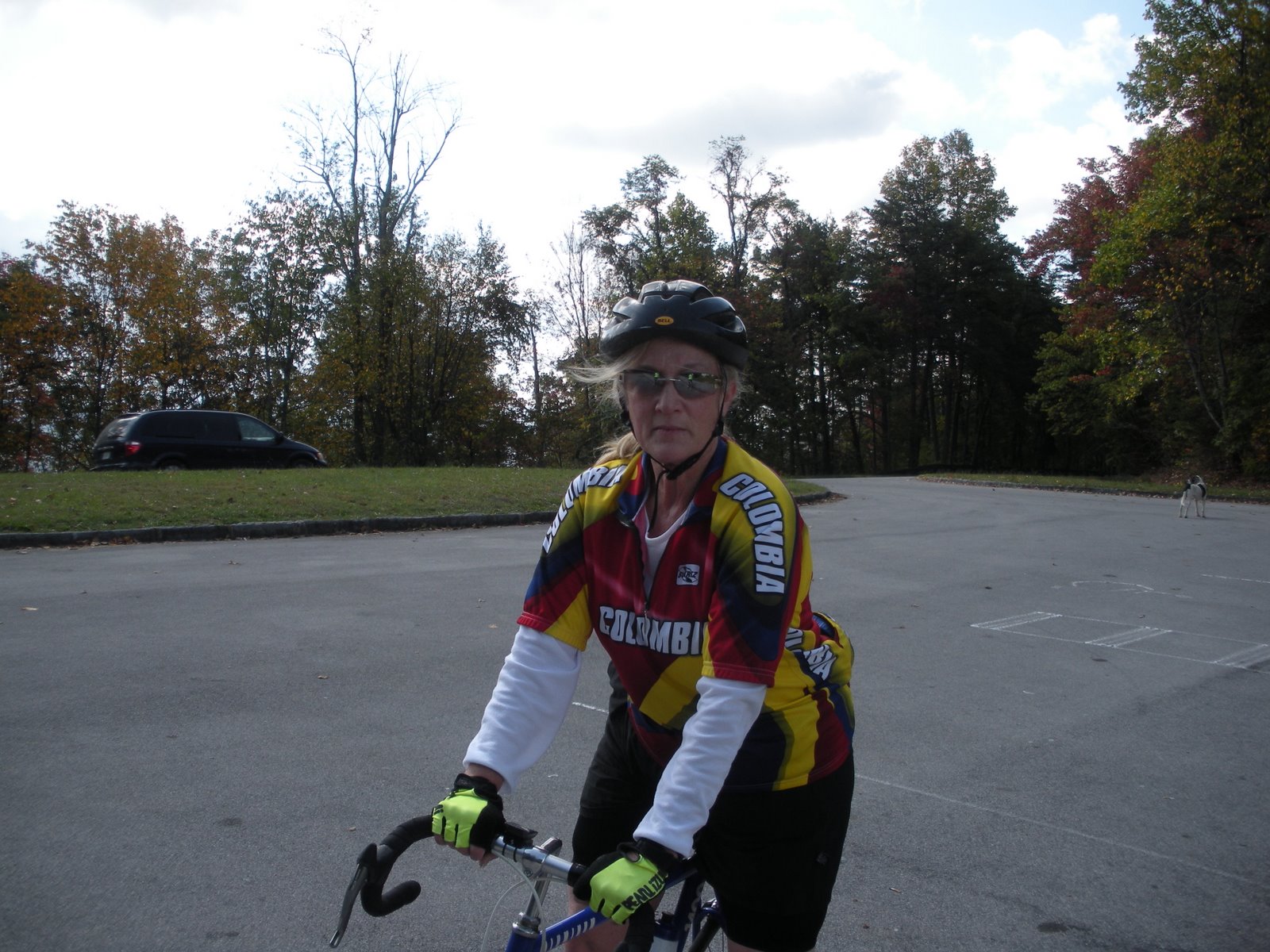 Me at the turn around in one of John’s cycling jerseys (with a wind jacket stuffed in the back pocket), my hiking shirt and my running shorts. It is a mixed look for sure. Eventually I will update.