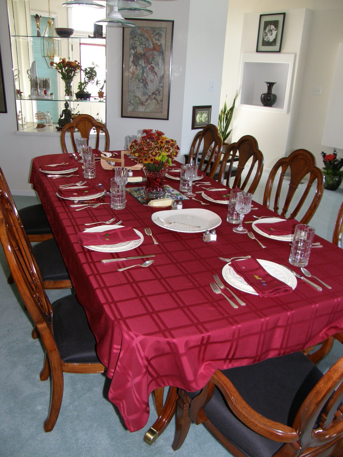 Leslie set a beautiful table. The fall mums in the center of the table are in a vase filled with fresh cranberries. Nice look!