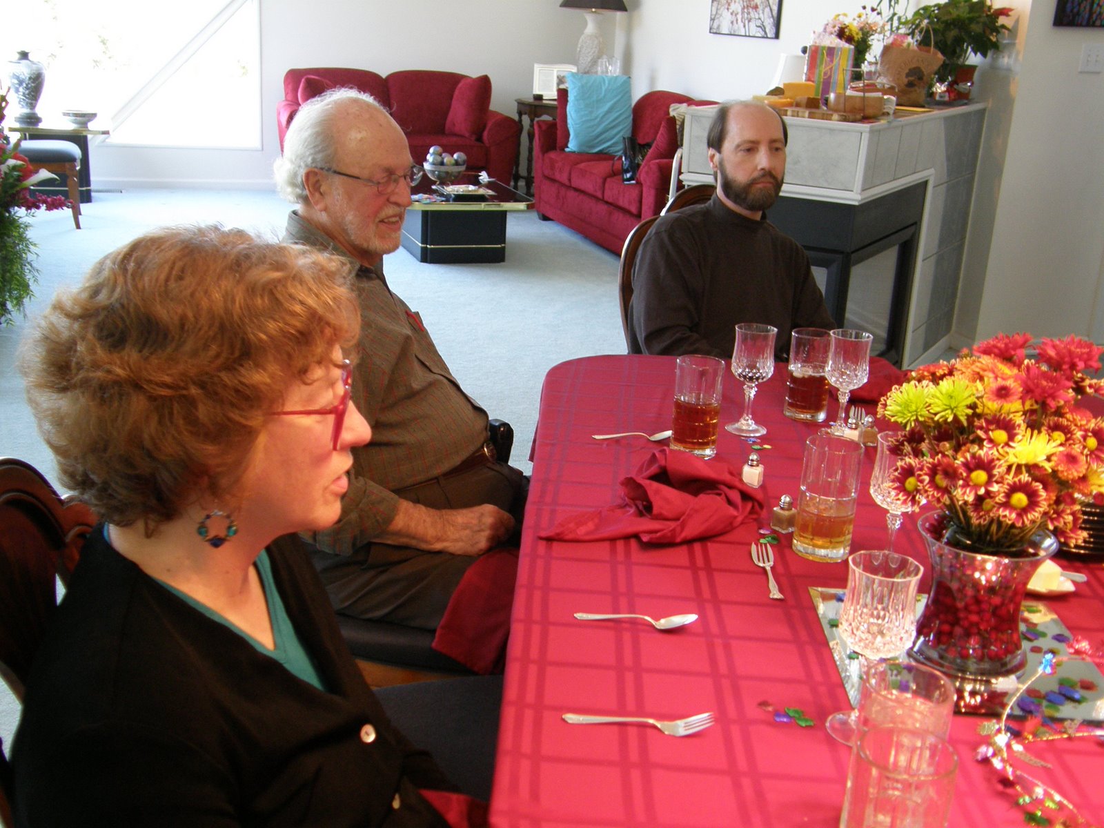 From left is Nancy, Gid’s daughter,in town from Pagosa, CO, then Gid and at the head of the table is Mike, Leslie’s husband.