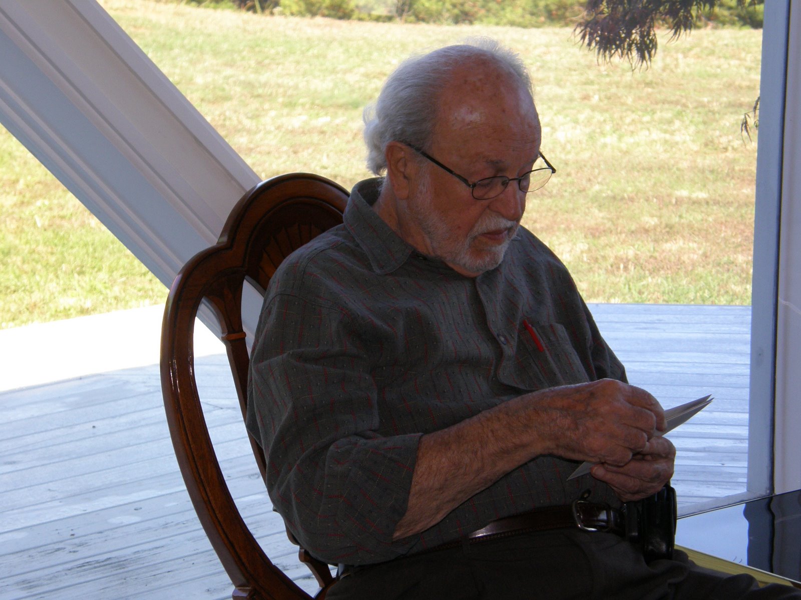 Long time friend of my dad, Gid Fryer, looking at some note cards.