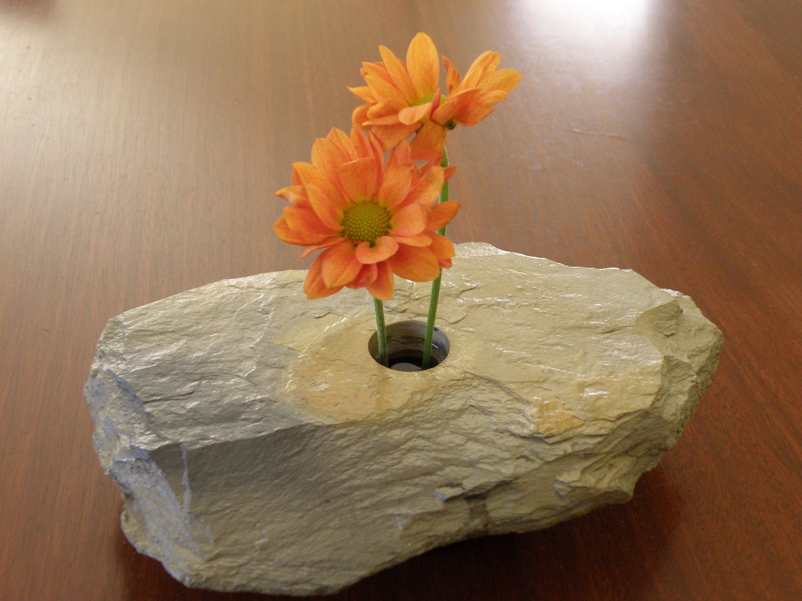 A couple of flowers from the above bouquets were too short for the arrangements so I used them to create this very clean, simple arrangement. Nice for a low coffee table.
