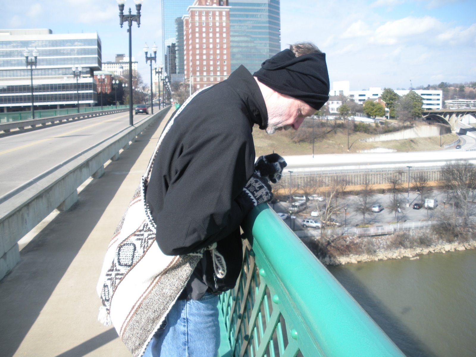 John, standing on the Gay Street bridge, looking down at the Tennessee River