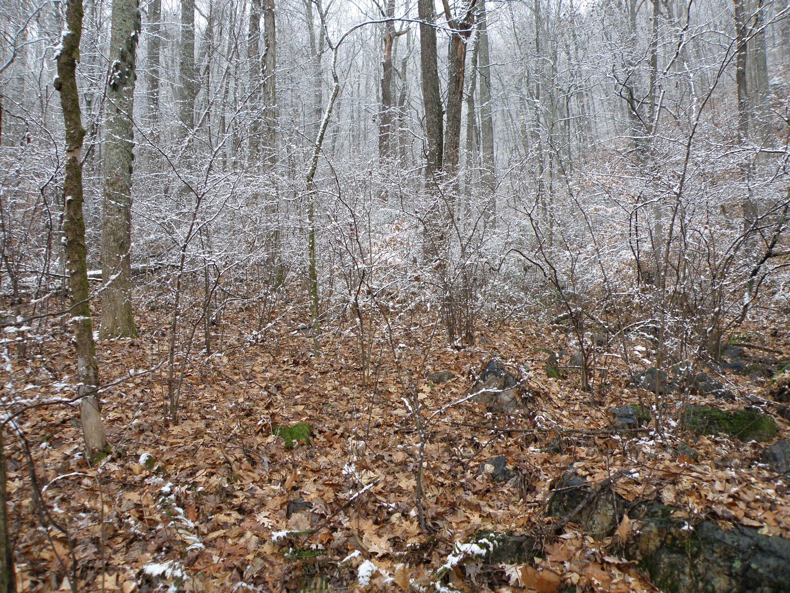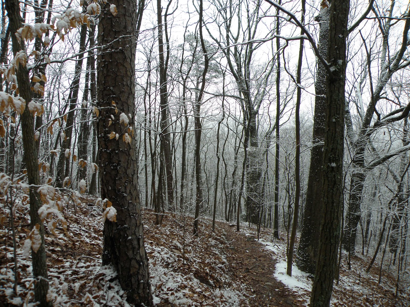 Today began cold and grey with light snow. Since snow is usually pretty scarce around here and John had the day off for the MLK holiday, we took a quick hike up House Mountain in search of a little accumulation.