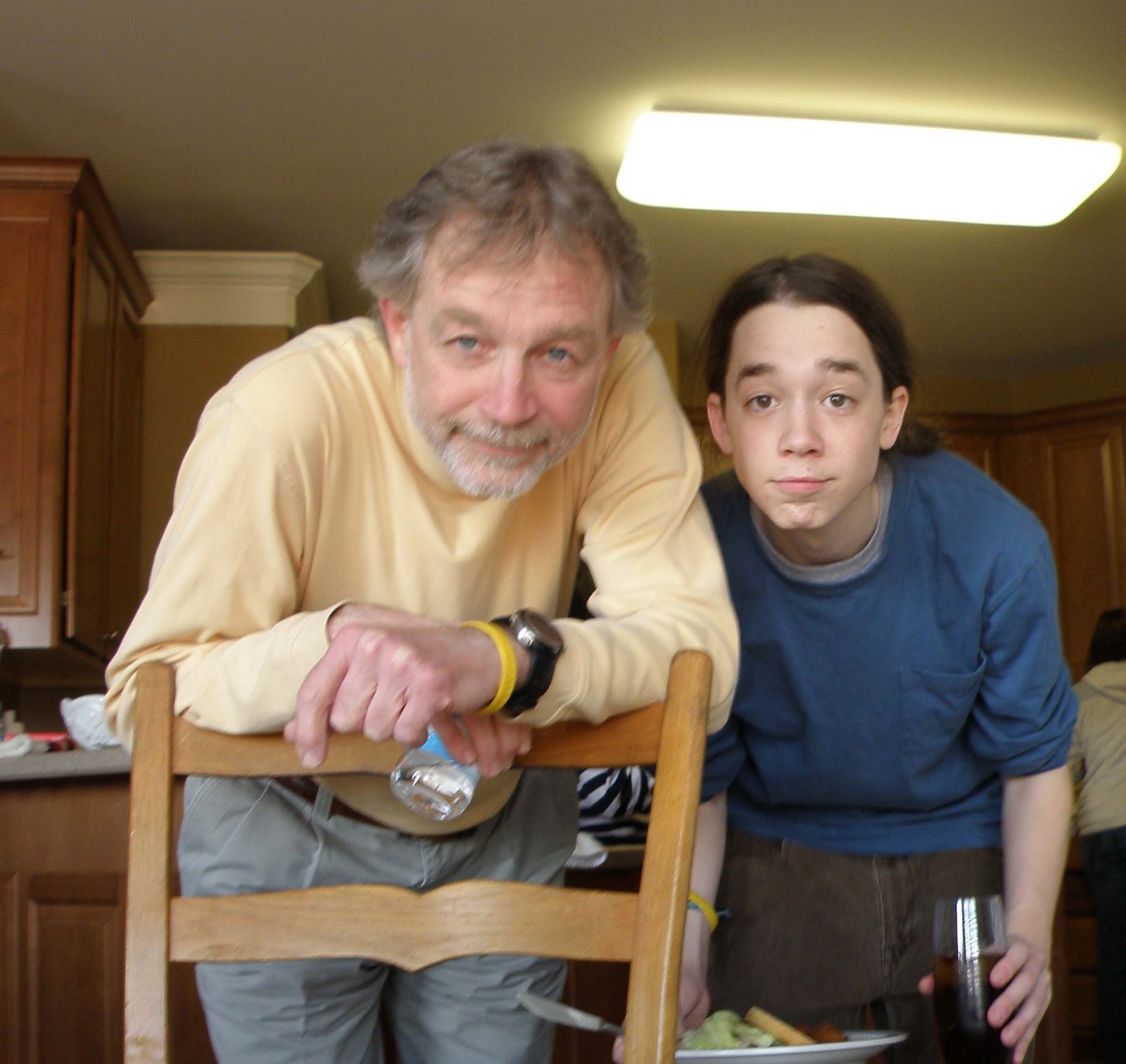 John sitting at his mother’s kitchen table, drinking coffee and doing some calculations of some sort.