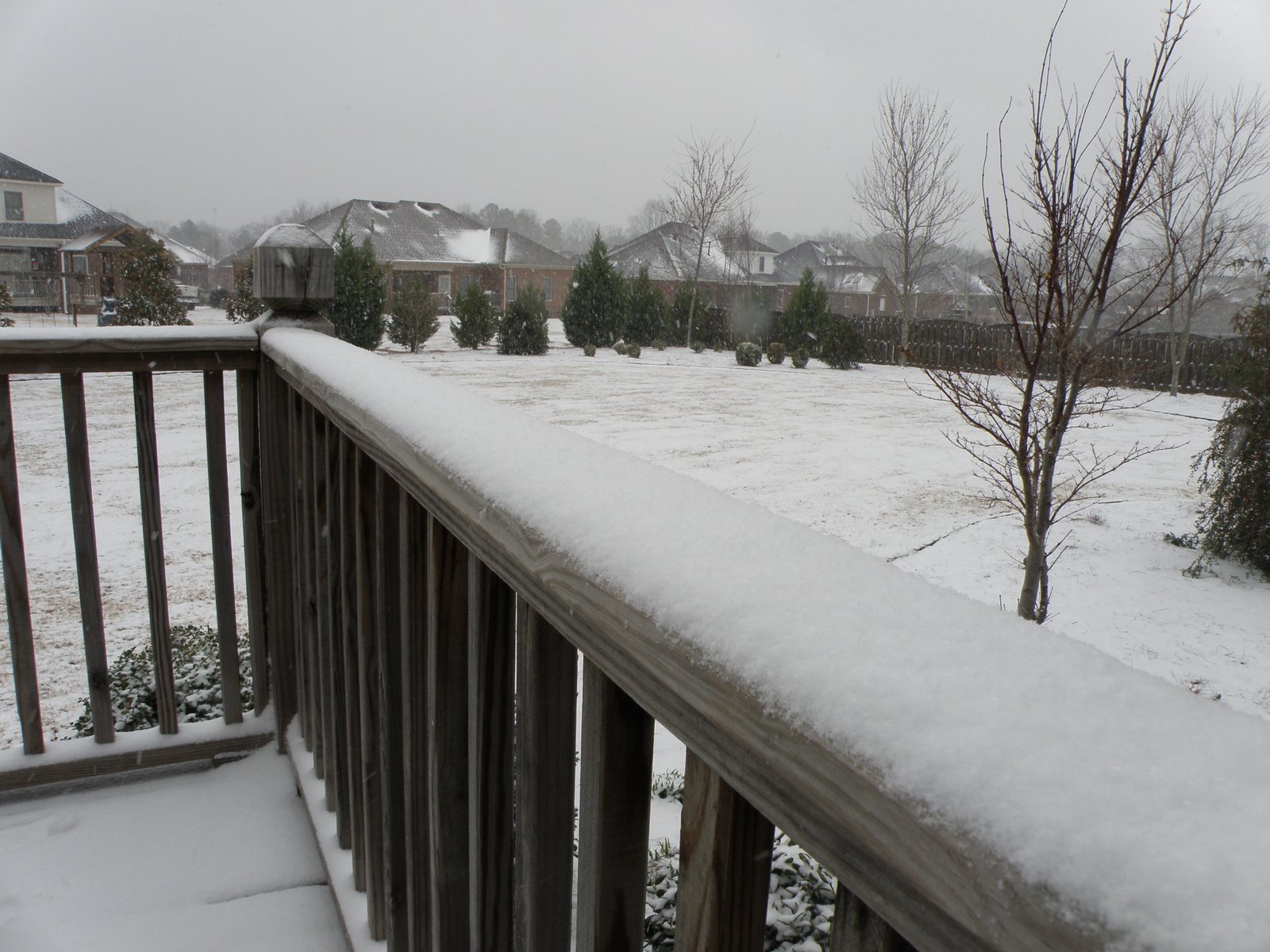 This past weekend, John, Lee and I went to Huntsville, AL to visit John’s family. Most of the weekend was consumed with talking and eating… and eating and eating. Lots of good food to be had including an endless basket of deep fried hush puppies and white barbecue sauce from a local barbecue dive. I woke up yesterday morning with a food hangover that I am still recovering from, we also woke up to some of the white stuff.