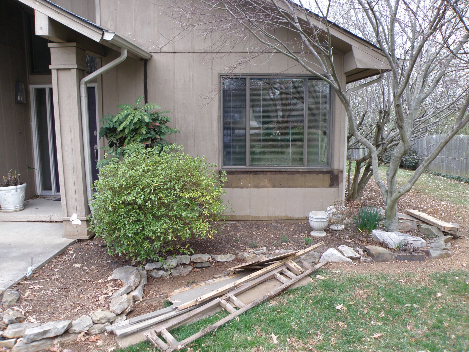 I am also waist deep into a home repair project that has lasted most of a very rainy March. Aside from mulch, the outside of the house is almost complete. I went from this look of faded paint and aging window boxes (note lumber and areas where I tore down window boxes):