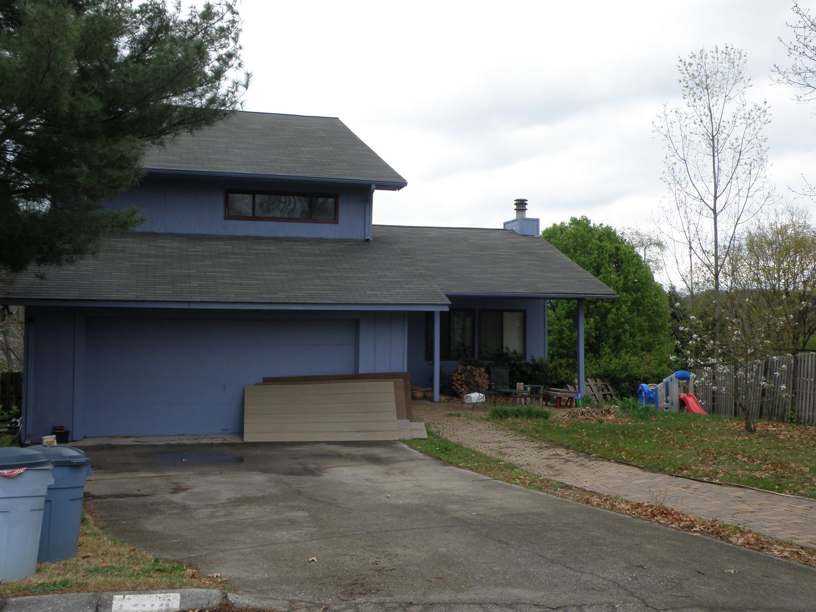 I just went out and took this picture of my neighbor’s house. Luckily most of the homes in my little neighborhood do not look this bad. This is an improvement for her as her house was repainted and the porch fixed last fall. I guess every neighborhood has one trashy resident.