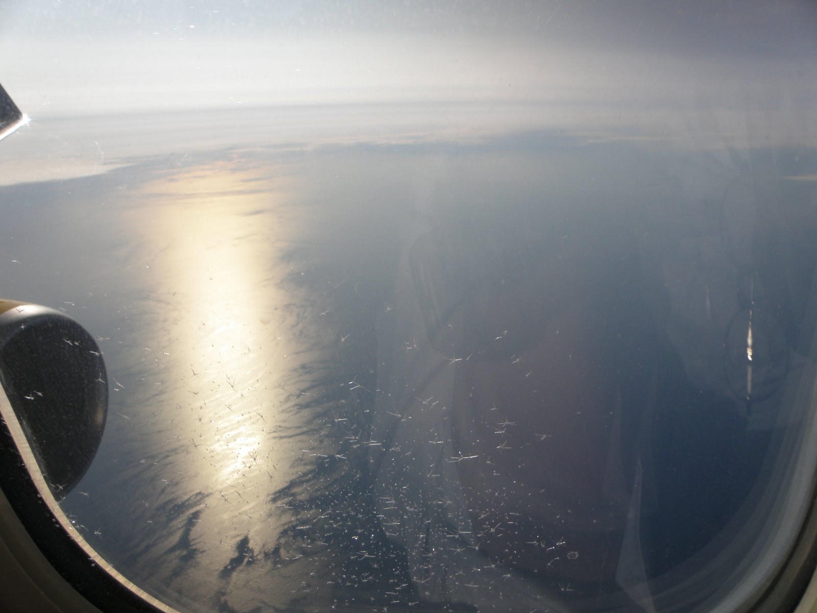 Another smooth flight in progress. I was able to catch the photo below (sunset on the Atlantic) before cloud cover obscured our sight. Unfortunately, we missed seeing Greenland completely.