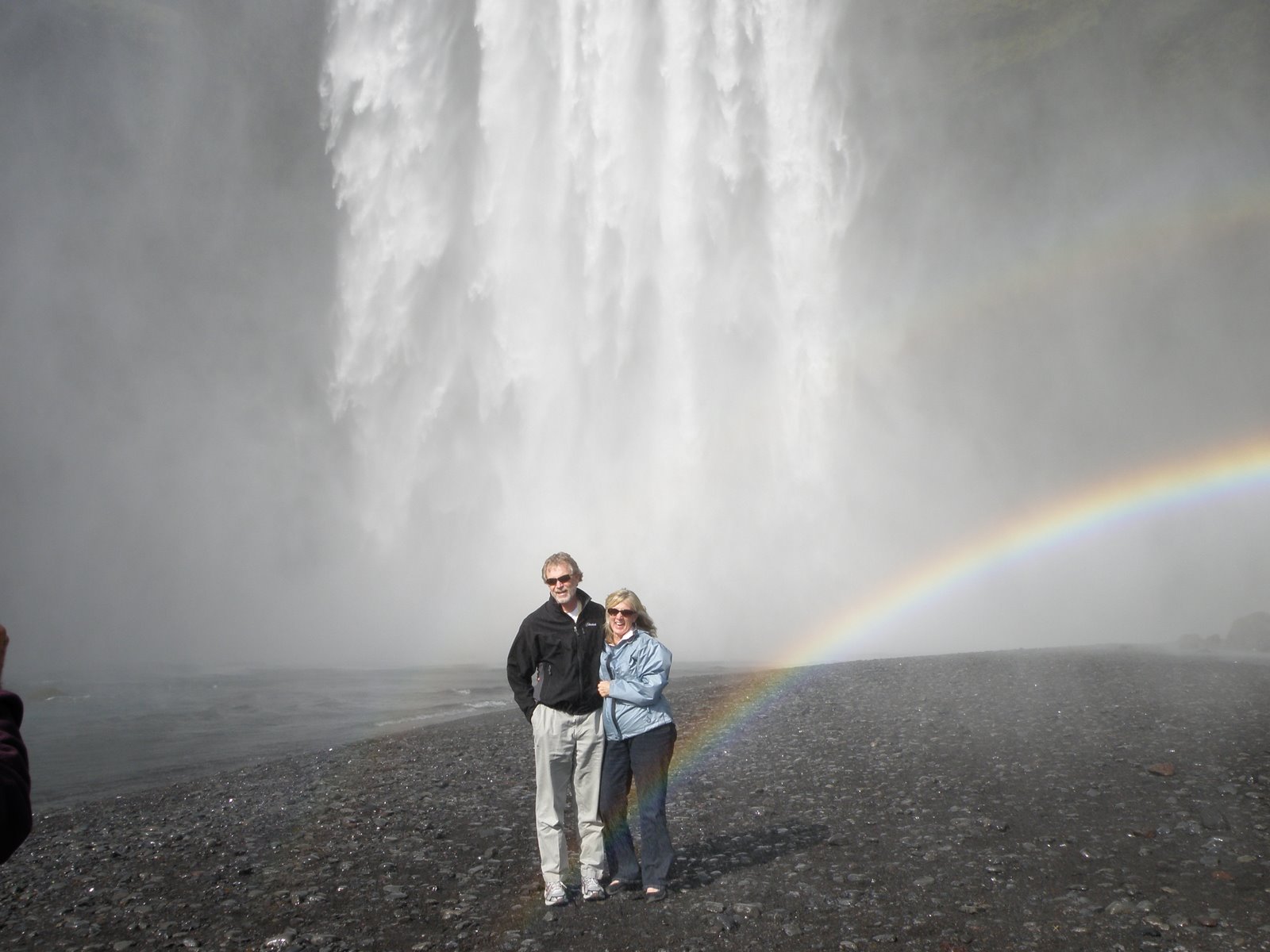 If you look at the falls, you can see a double rainbow. At one point we saw a bit of a third rainbow. In the pic below, we are standing at the end of the rainbow thinking that exploring Iceland is the pot of gold.