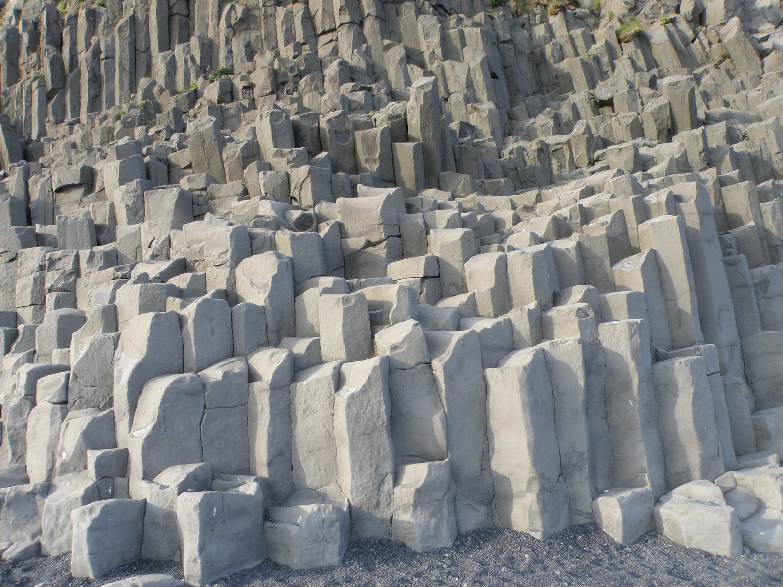 The gravel road took several twists and turns and finally dumped us in a parking lot with a view of the ocean and extraordinary rock cliffs. We took a short path to the beach, which is mostly smooth pebbles and fine rock. Caves and diagonal pillar rocks line the cliffs along the waterfront. Rock stacks, shaped by wind and water, are visible just out to sea.