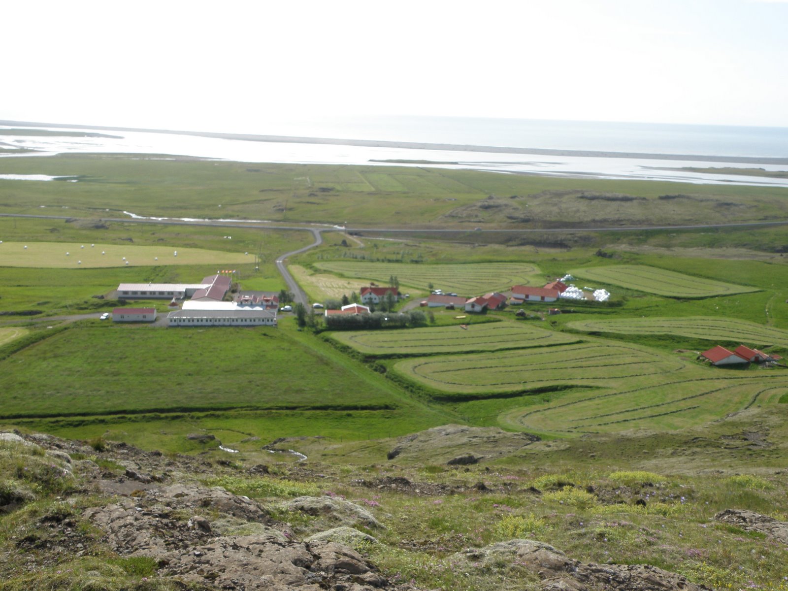 This morning was the same routine as the past couple of days, breakfast at 8:00 AM, on the road by about 9:00 AM. Today we are headed up a gravel road behind our hotel. We heard the staff mention a glacier but we aren’t sure how far it is. The view of our guesthouse from the first ridge is incredible. We can see the entire farm, Highway 1 and in the distance, the ocean.