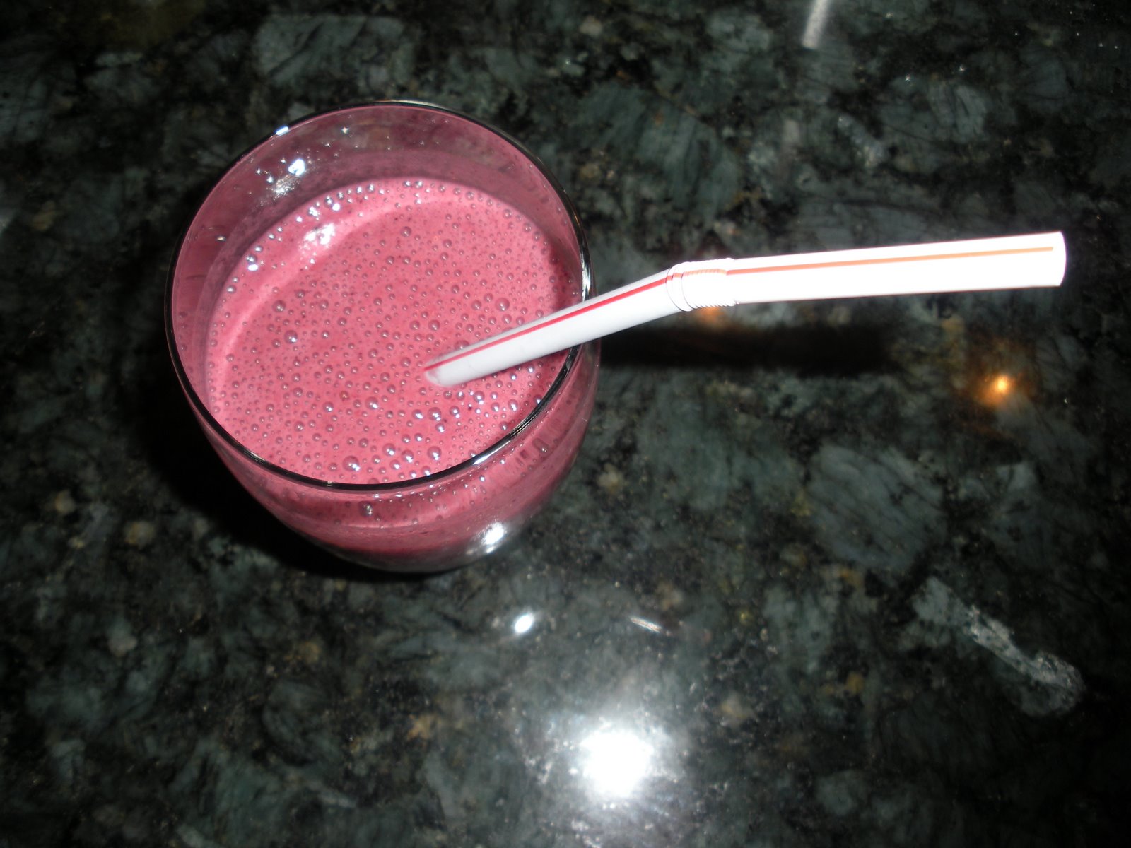 A smoothie made with frozen blueberry yogurt that I made before our trip