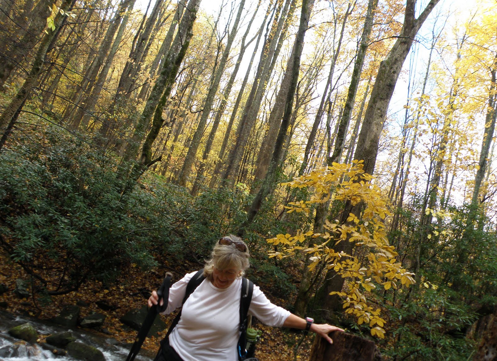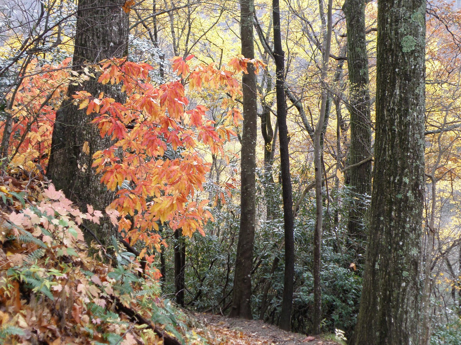 Yesterday we went in search of the last of the 2009 fall colors with friends Will Skelton and Kim Robinette. The hike had started as a backpack, possibly in the Big South Fork or Cherokee National Forest. We set the weekend, tried to get friends Bill Adams and Silke Hecht to join us (they had other plans) and just never firmed anything up.