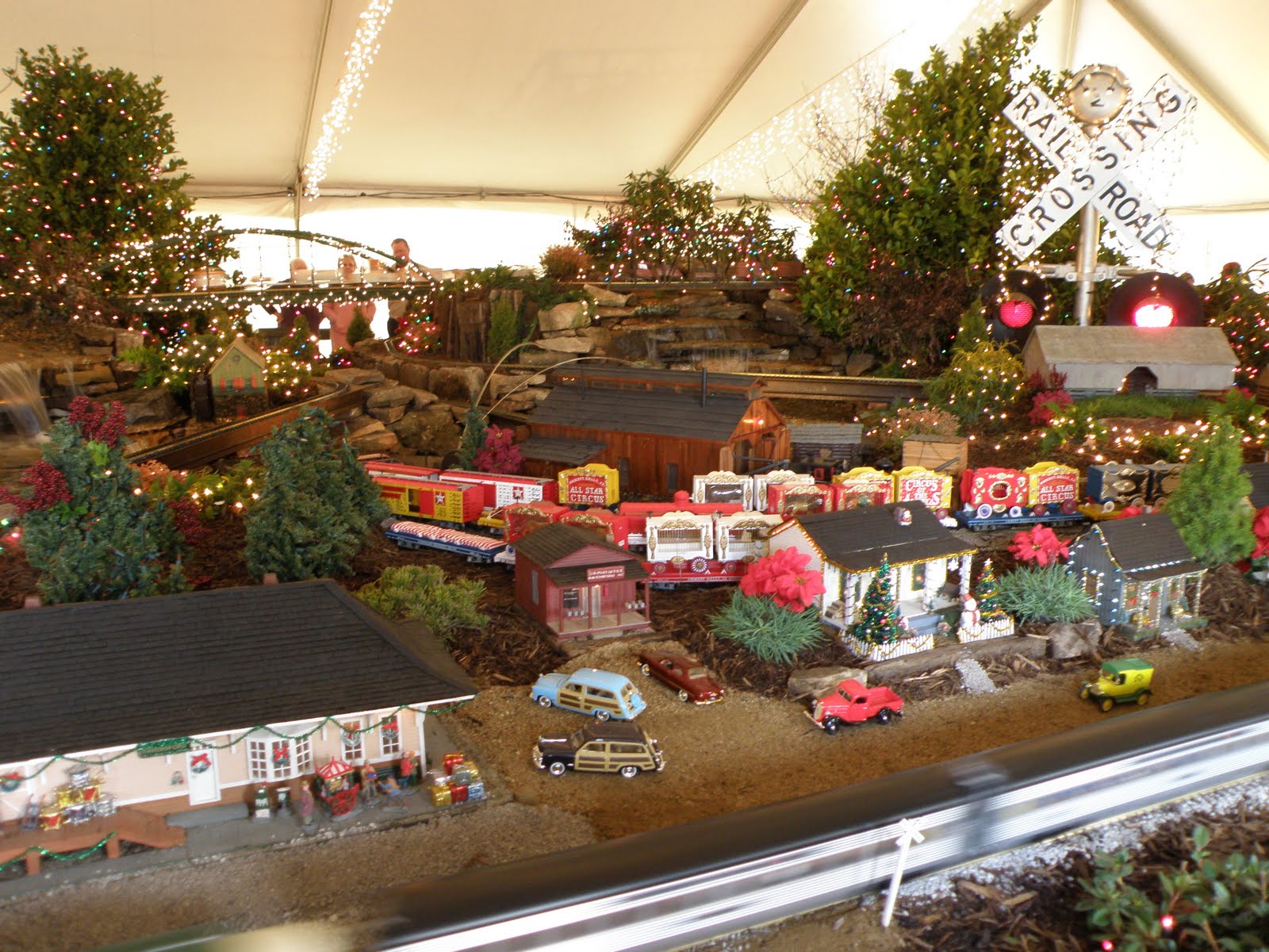 Sunday we headed out to the University of Tennessee Trial Gardens to see the “Holiday Express.” The Express is 4000′ of model trains and sets that have been collected and built over 25 years by a Knoxville resident. Each year, when Thanksgiving rolls around, he sets up the display in a heated tent on garden property and for a nominal fee, anyone can enjoy his hobby. The Trail Gardens are also decorated with ribbons and garland and make for a nice Sunday afternoon stroll.