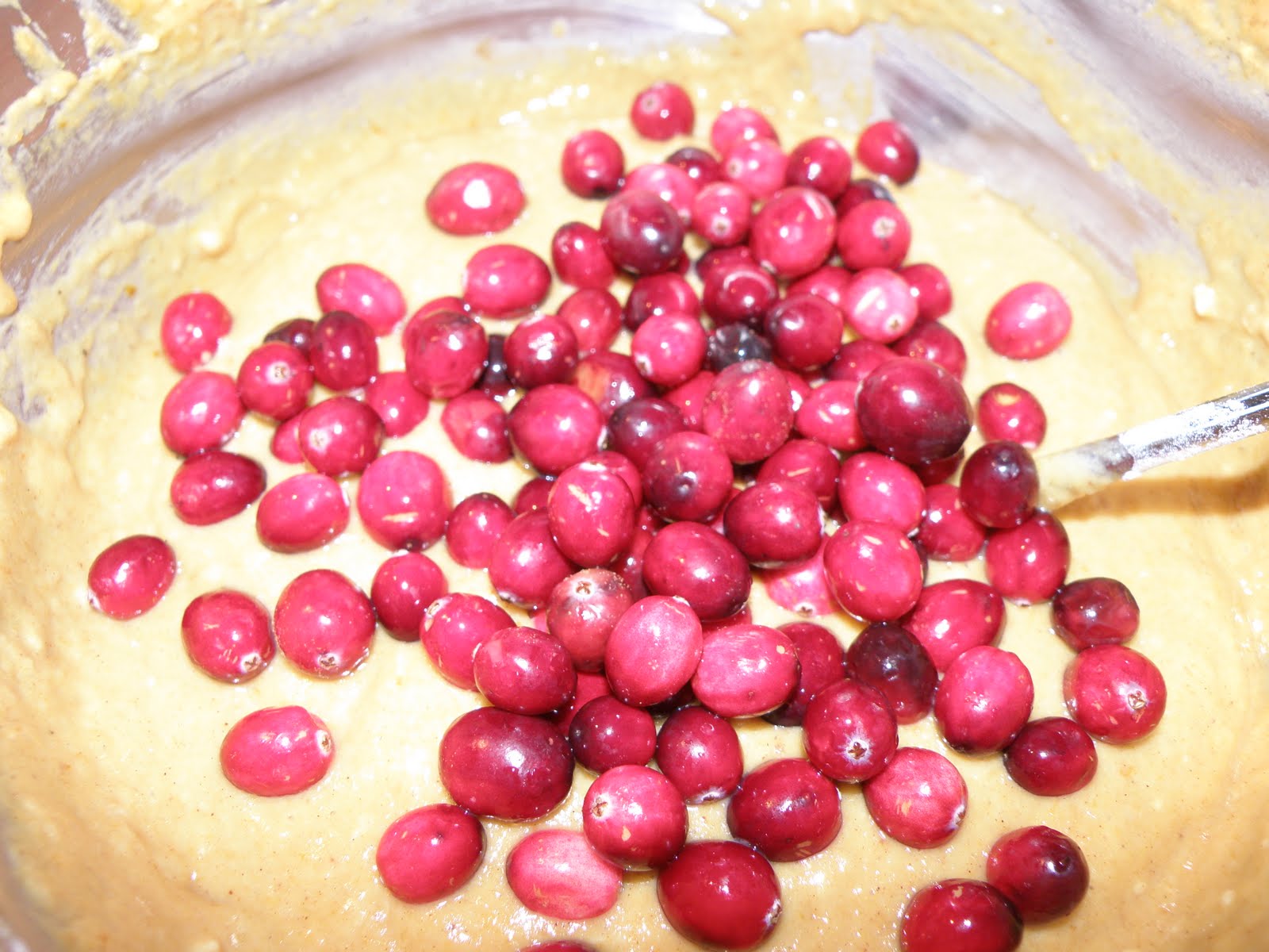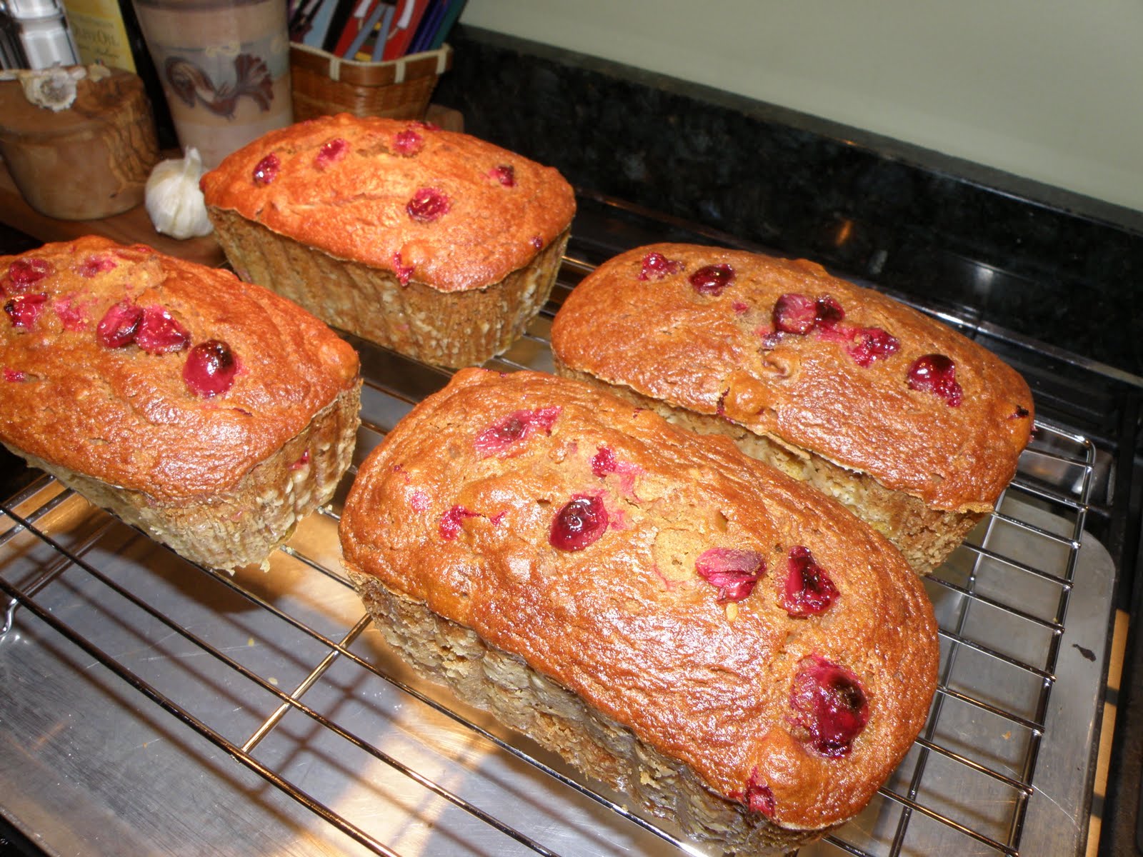 Sometime during the month I baked a bunch of pumpkin cranberry walnut bread. Fresh cranberries are hard to find around here this time of year so a few weeks ago, when I found them at our local Earth Fare, I grabbed a bag. The only problem was, I didn’t know what to do with them. As I watched the berries start to go mushy, it occurred to me that I had a can of pumpkin in the cabinet. The result…pumpkin meets cranberries and walnuts.