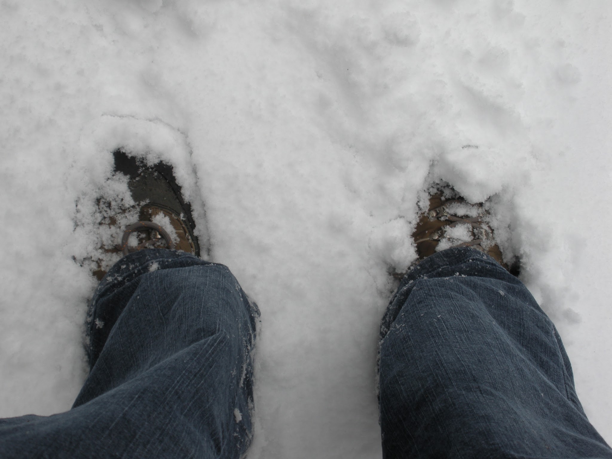 He is a methodical shoveler, pushing snow in one direction and going back to scrap at ice spots caused by our boots.
