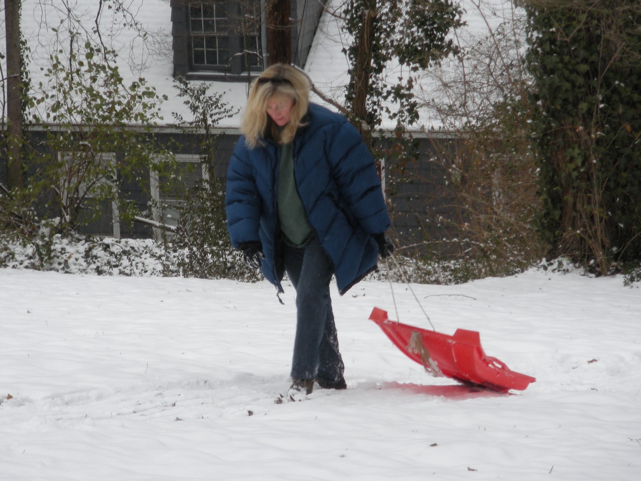 The backyard seems pretty big when mowing but on the sled, not so big. As the runs got faster, I would stick my feet out sooner to slow down. As a result, the runs got shorter. I finally had enough.