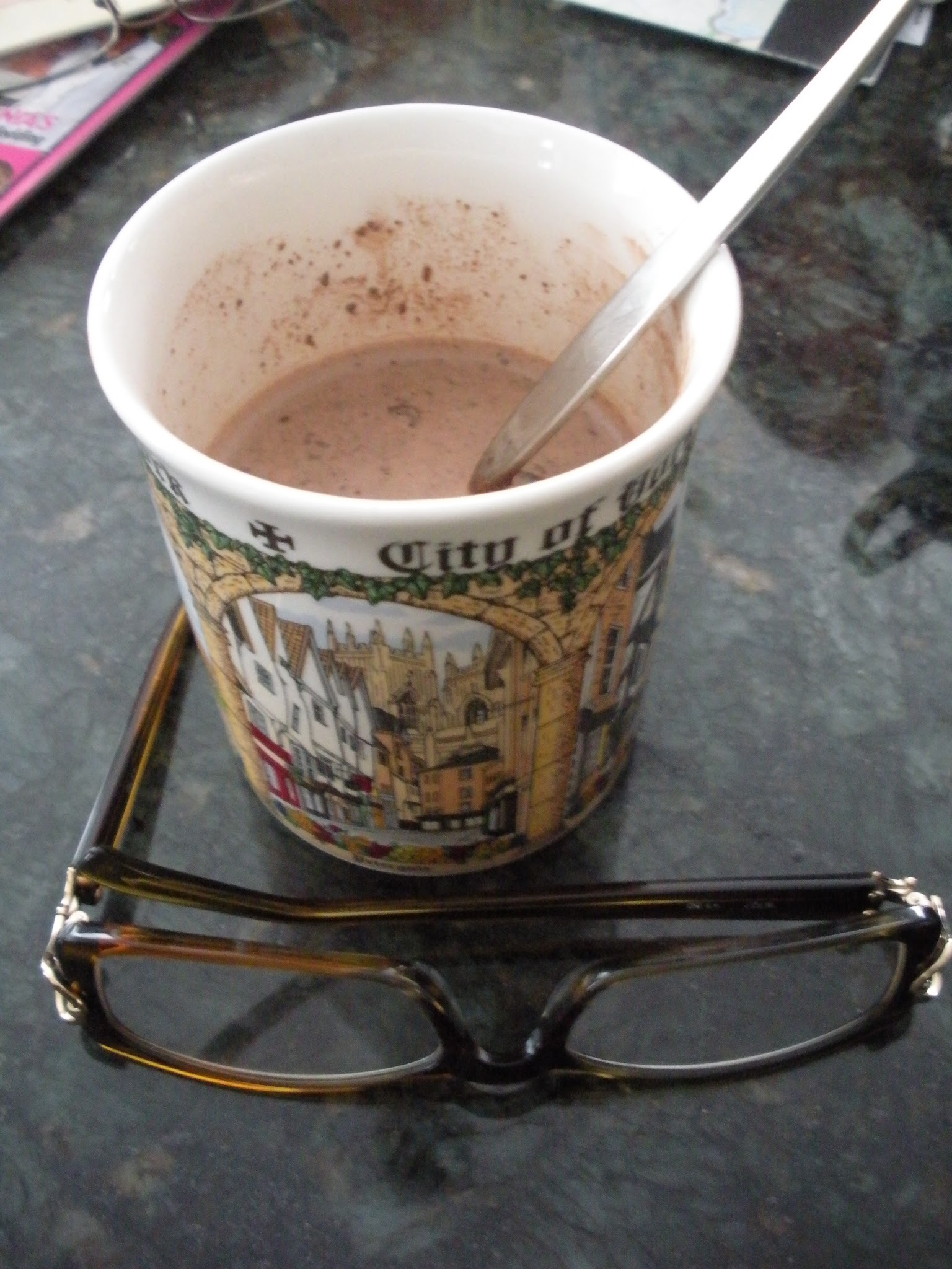 After an hour in the snow, time for a cup of hot chocolate and some serious computer time.