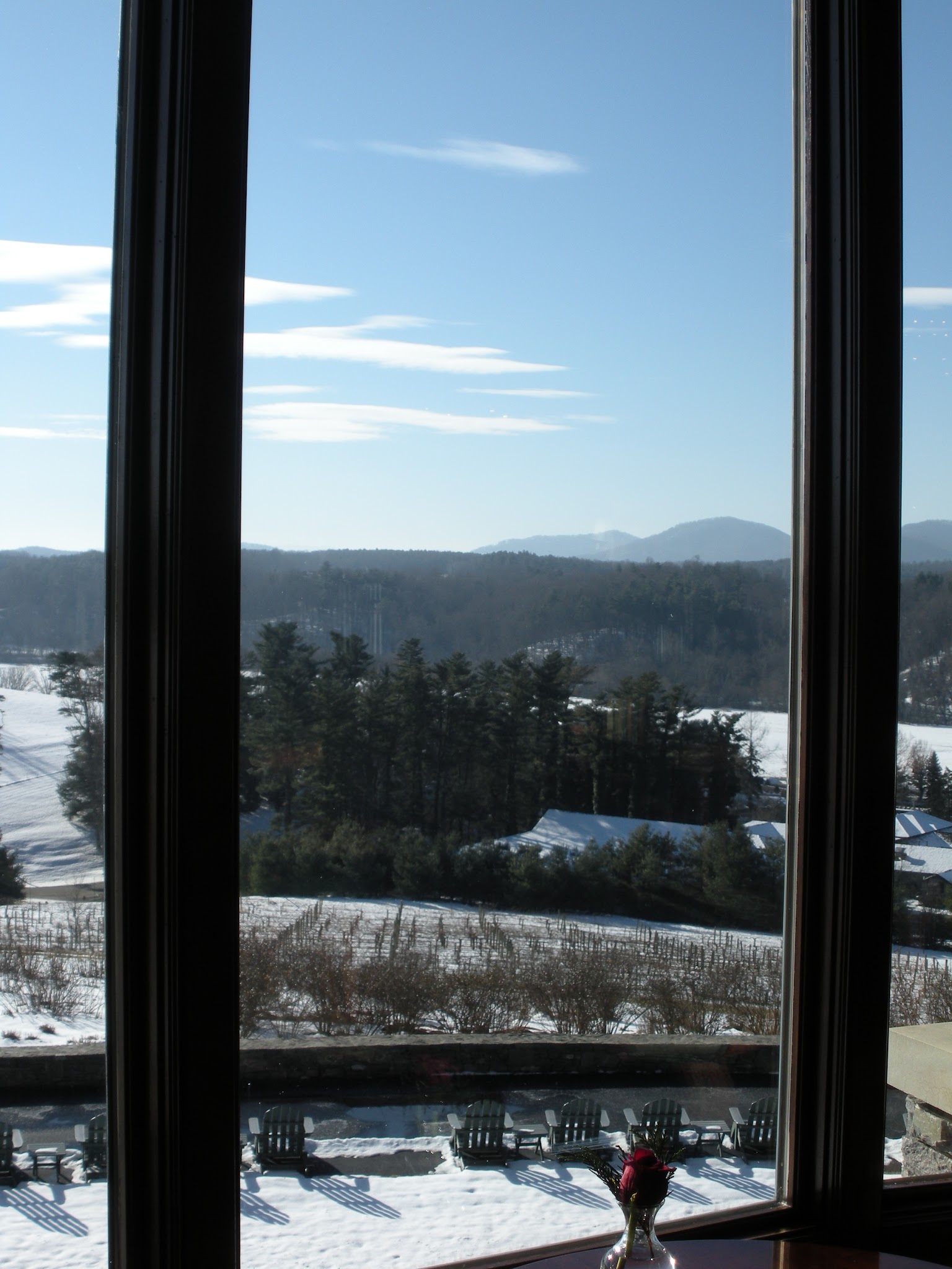We stopped in Asheville at the REI and Liberty Bicycle then headed to the Inn. Apparently the reservations office and I had some confusion with the package we thought we had purchased but we ended up in a beautiful 6th floor room with an incredible view of the mountains.