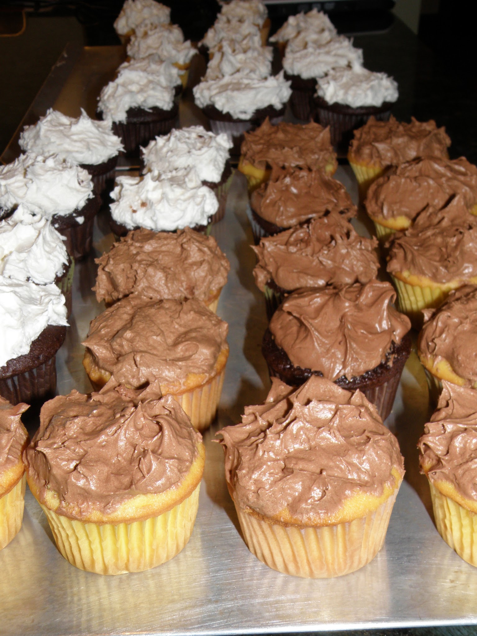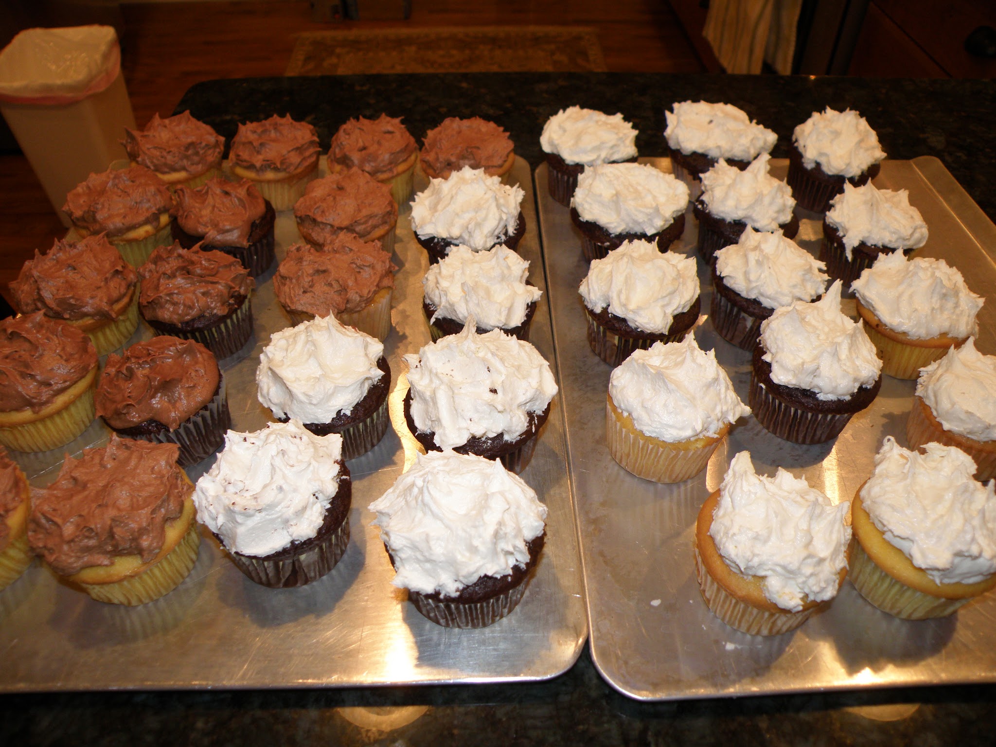 Finally, the cupcakes for tomorrow’s party are done. I started out with the idea of swirling the icing but decided random peaks would go faster. While I have a ways to go on food photography, the pics below reflex some hours of mixing, baking and frosting!