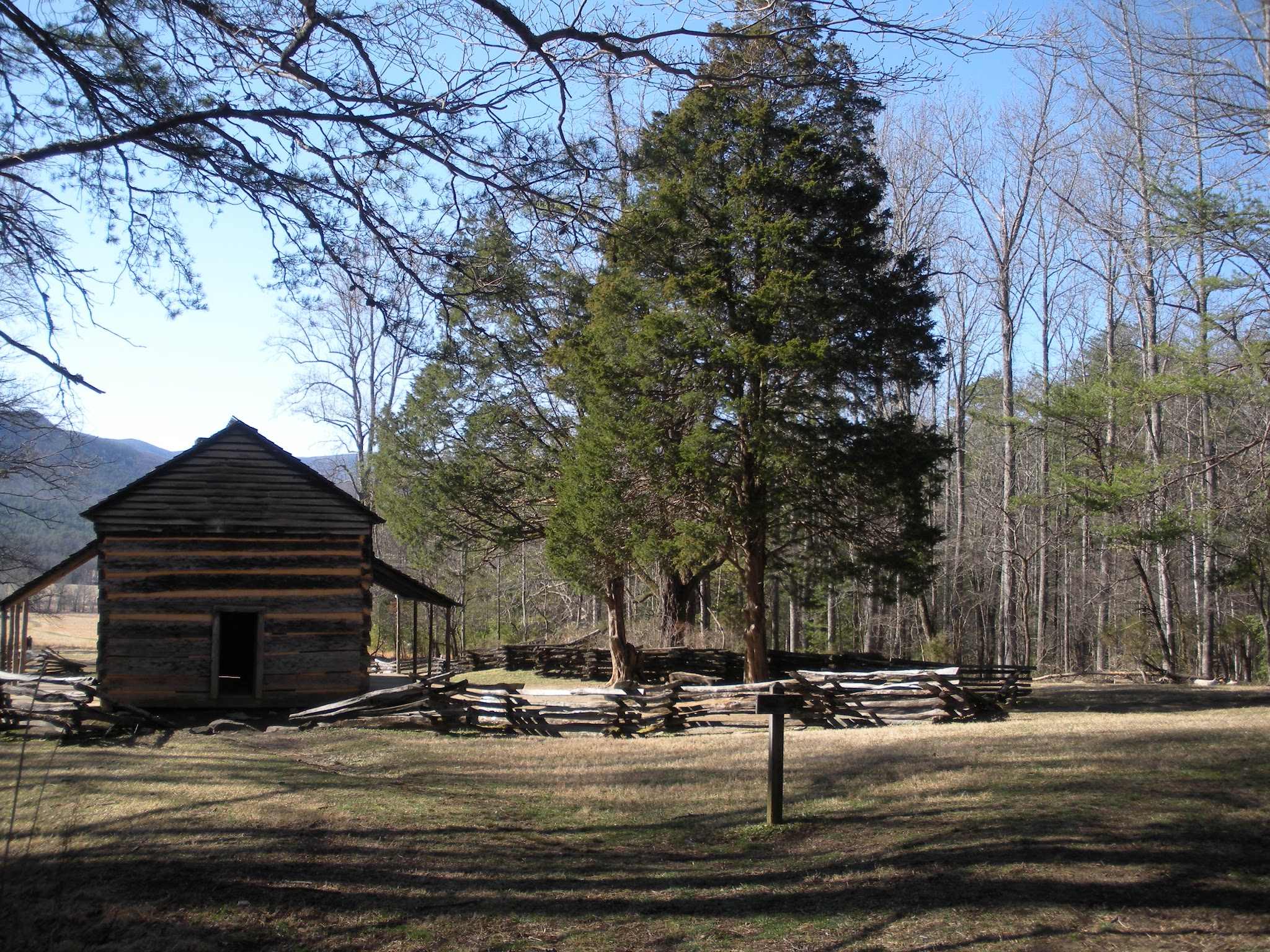 About a mile into the hike, we reached the backside of John Oliver’s cabin. The cabin was built in the 1820’s by the first resident of the Cove. The cabin is a small structure with a covered front and back porch.