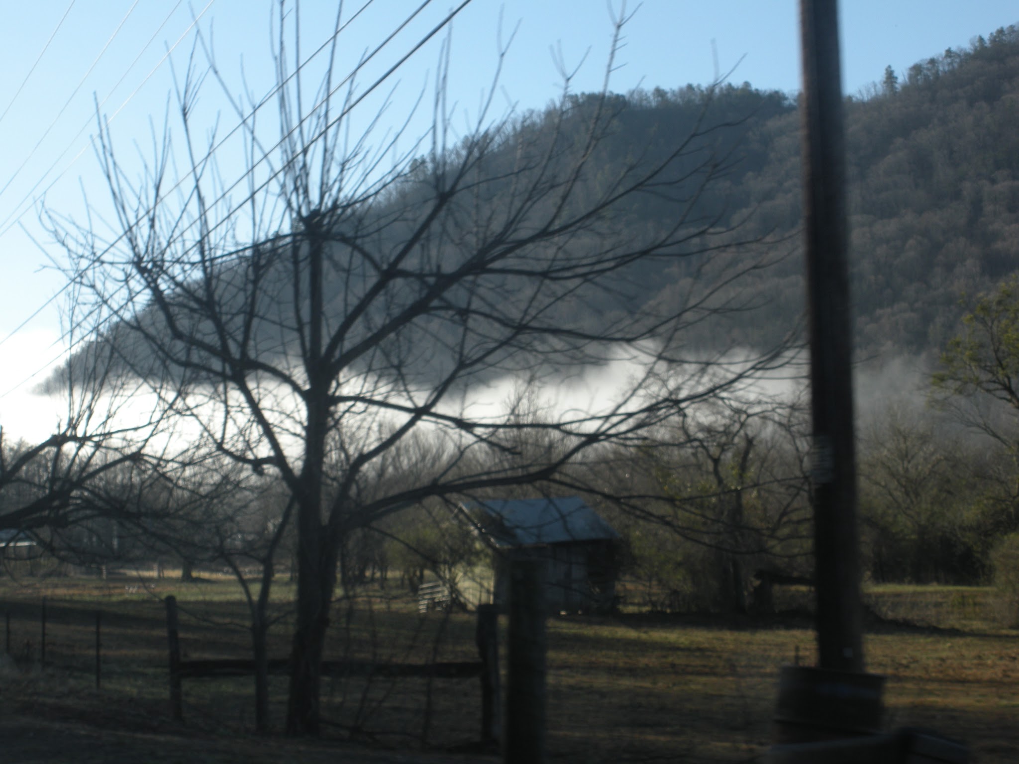 Busy weekend as we continue to get back into hiking. Saturday morning John and I left the house around 8:30 AM and pointed the car toward the Great Smoky Mountains National Park. We drove the back roads, the bicycle roads, so John could get a glimpse of other riders and day dream about being in his bicycle shoes instead of his boots. As we drove along Old Walland Road, we caught this glimpse of low lying clouds trapped between the foothills. Really incredible as we drove into the clouds and out on the other side.