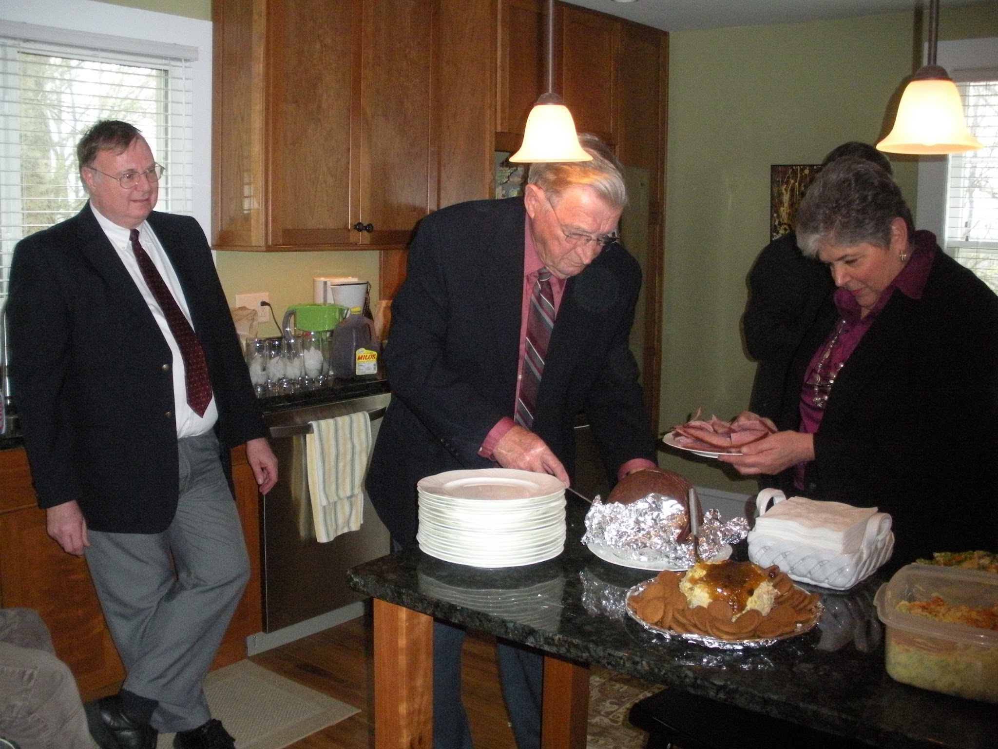 Vicky’s husband, Steve watches as Uncle Joe and Vicky get the food ready to serve. John says I was flitting around and couldn’t seem to light long enough to pull things together.