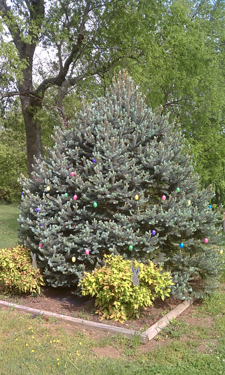 The neighborhood association also decorates a small tree for special occasions.  Below, I present the 2011 Easter tree.