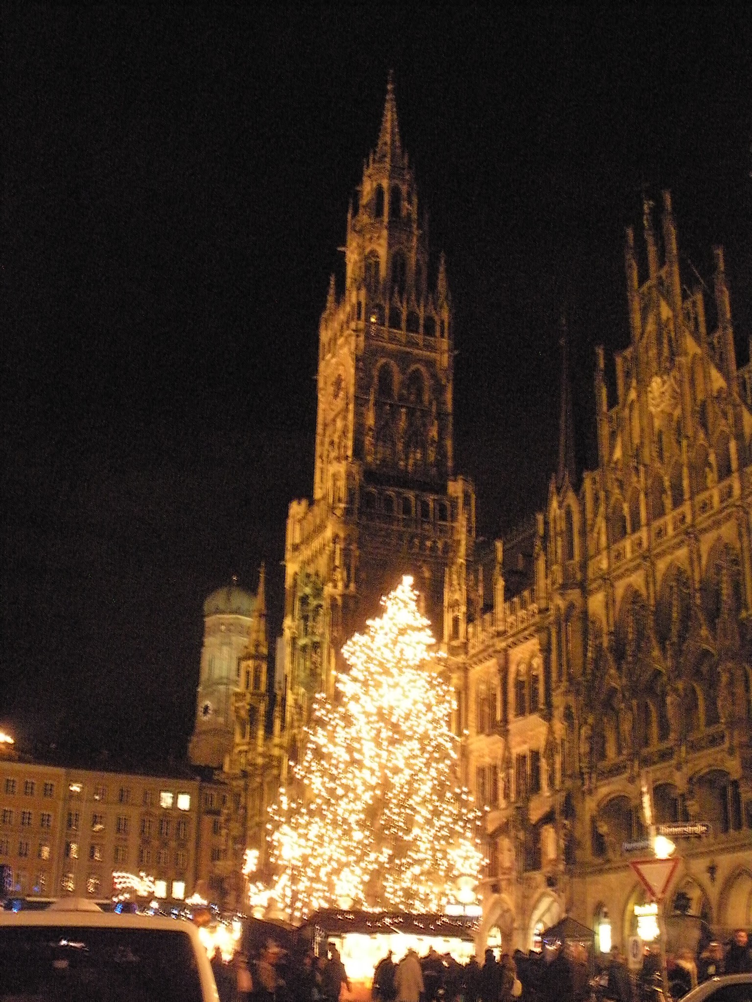 Athought we had boarded the train above ground, our terminus was a multi-level underground station. We were tired, a little confused and struggled to locate the exit. Eventually we got our exhausted bodies, luggage and carry-ons up the escalator and out into the night air. Finally we had arrived, Marienplatz, the main square in the heart of old town Munich.