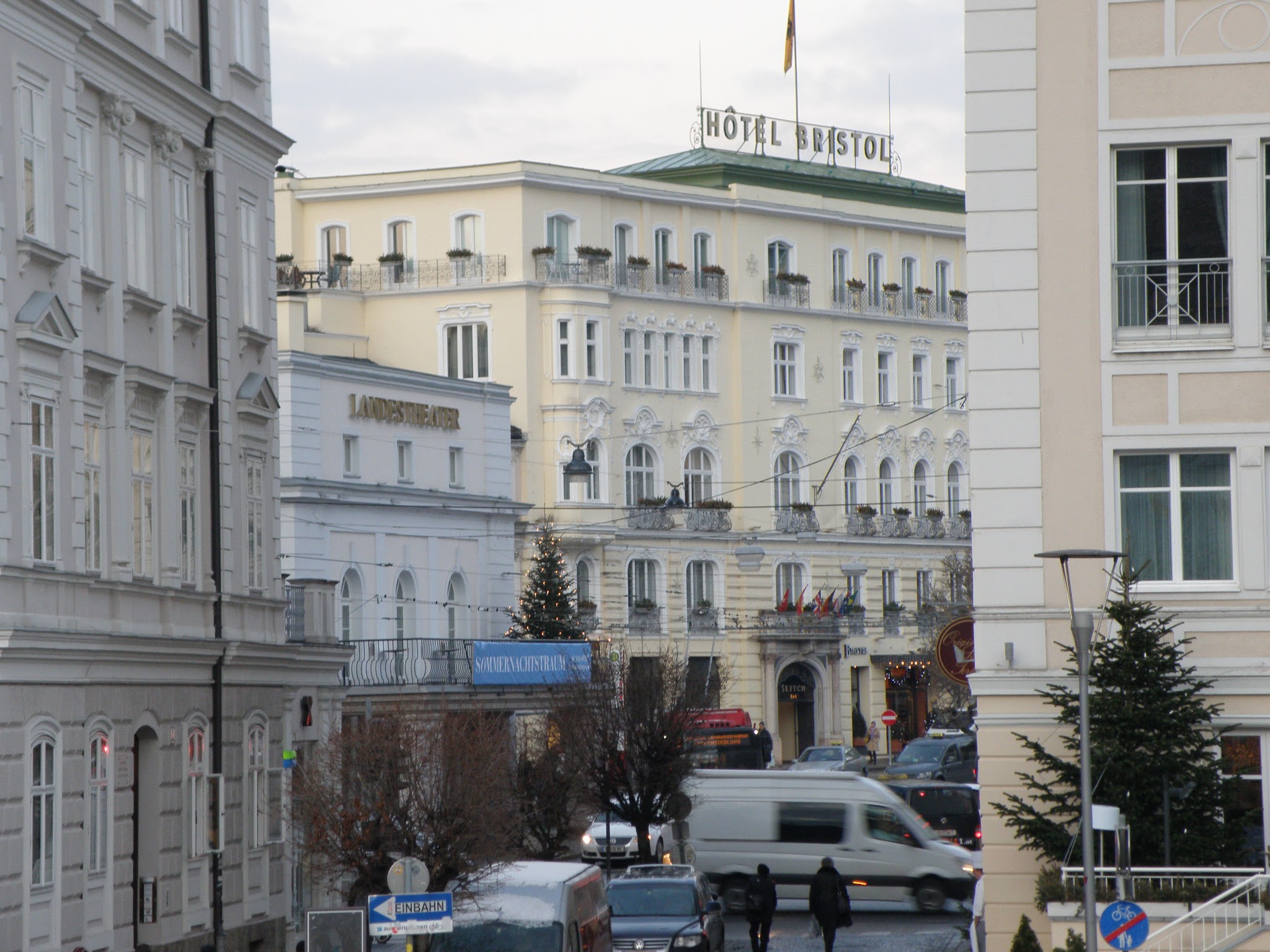 Traveling through the Bavarian countryside by train is a lovely experience.  We pressed our faces against the windows as quaint, gingerbread villages and farm lands flew by, first in Germany and then Austria.  Snow levels increased as we neared the foothills of the Bavarian Alps and dissipated on the other side.  After a short 1-1/2 hours, we pulled into Salzburg and disembarked.   Our hotel was a 10 minute taxi ride from the station, or two taxis for our group of six with luggage.