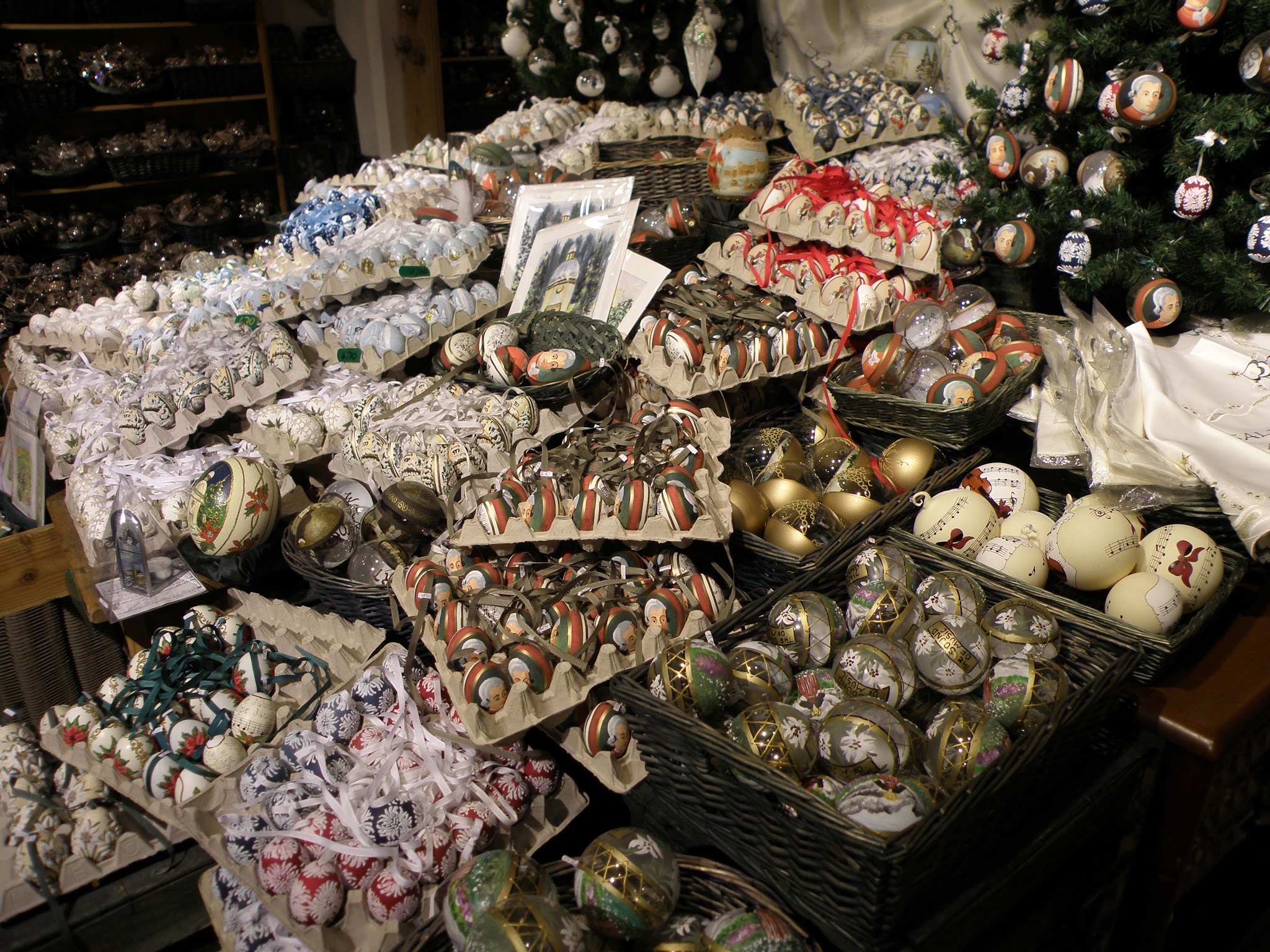 A small sample of the many thousands of eggs for sale.  Note the Mozart eggs hanging on the tree and in several cartons.  We came home with about 1/2 dozen eggs.