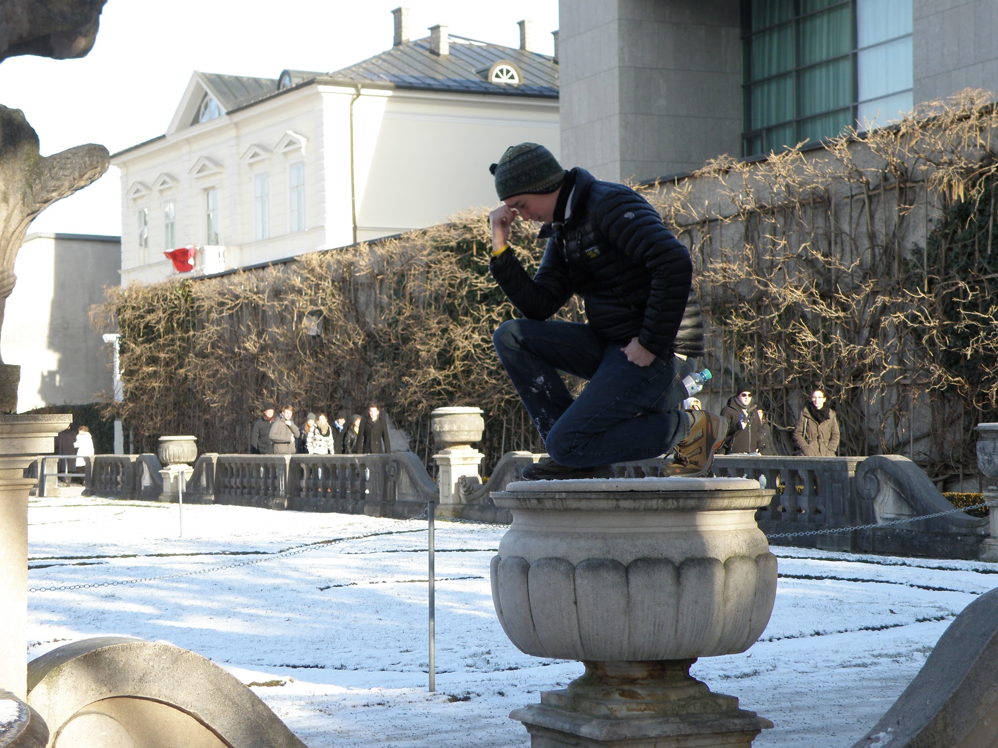 Daniel on one of the statues in the park