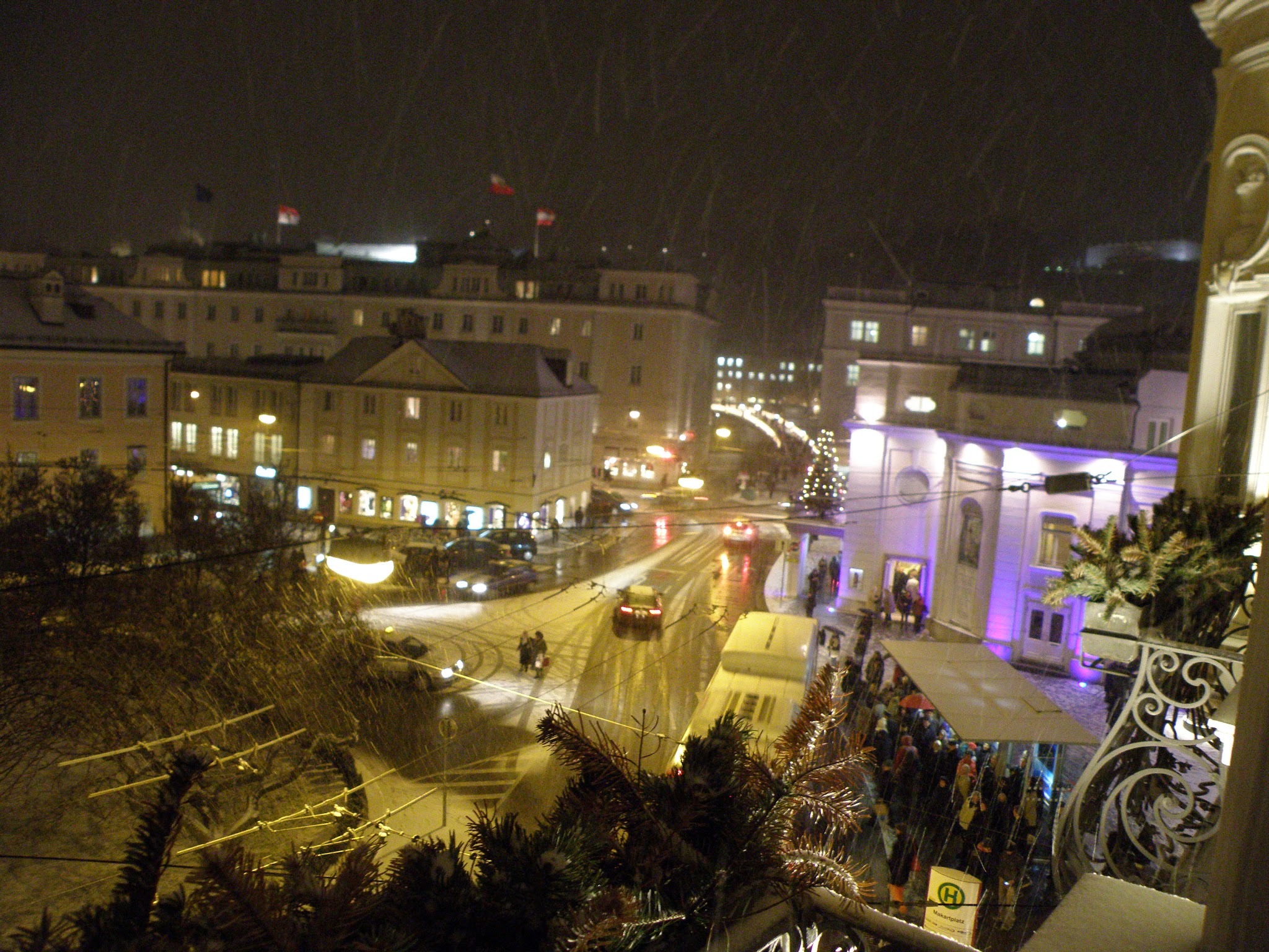A wet snow began to fall as we wrapped up our final night in Old Town Salzburg. We scurried across the pedestrian bridge and home before the wind and dropping temperatures turned the winter wonderland into a treacherous obstacle course. John and I watched the snow from our balcony and talked about our trip. Tomorrow, Vienna…